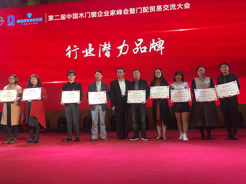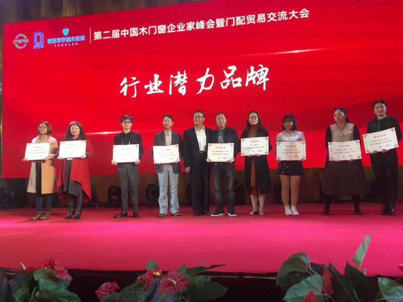 2017年第二屆中國(guó)木門(mén)窗企業(yè)家在峰會(huì)上樹(shù)興木業(yè)有限公司舉獲得2017年中國(guó)木門(mén)窗行業(yè)的潛力品牌的榮譽(yù)